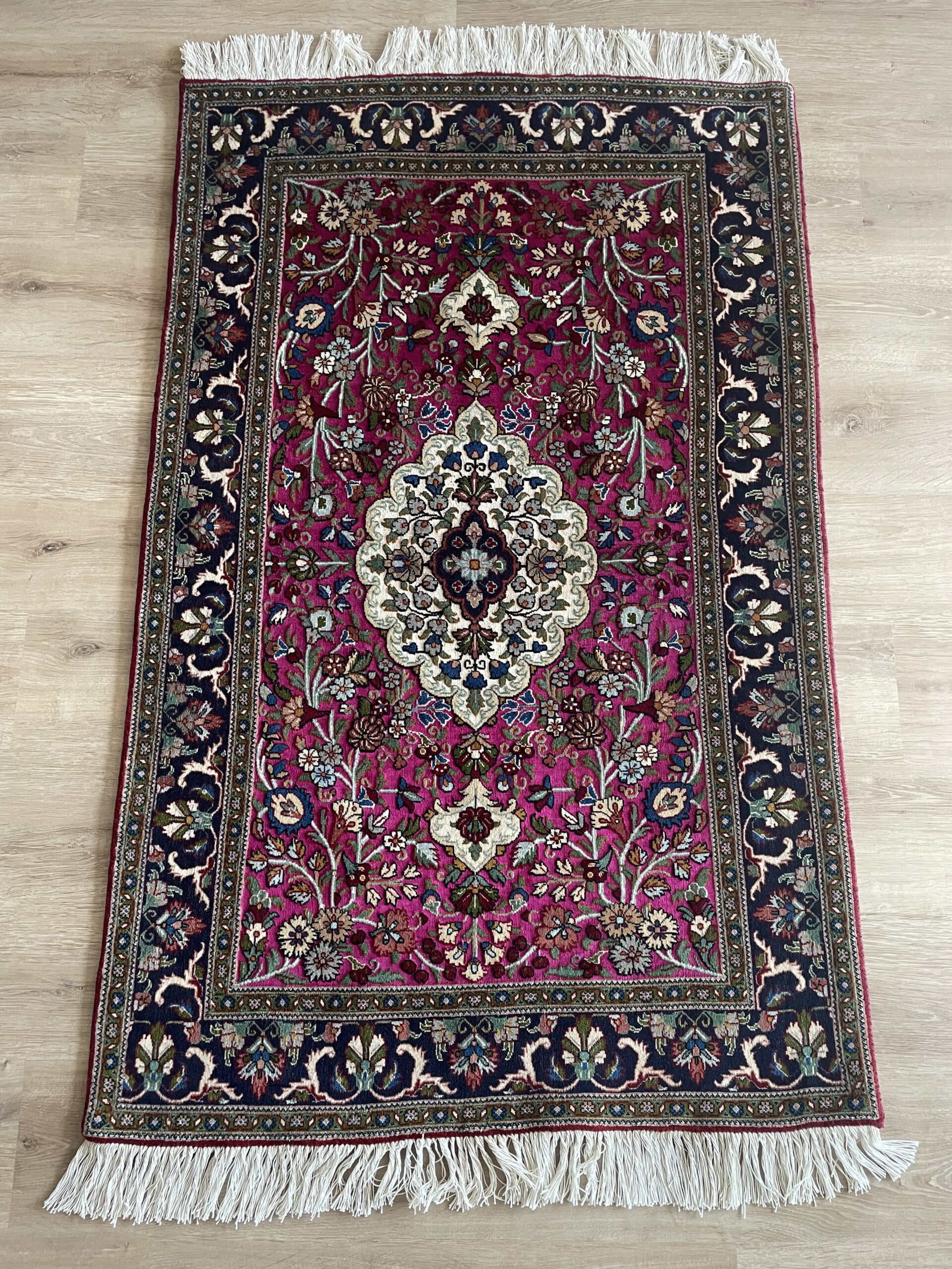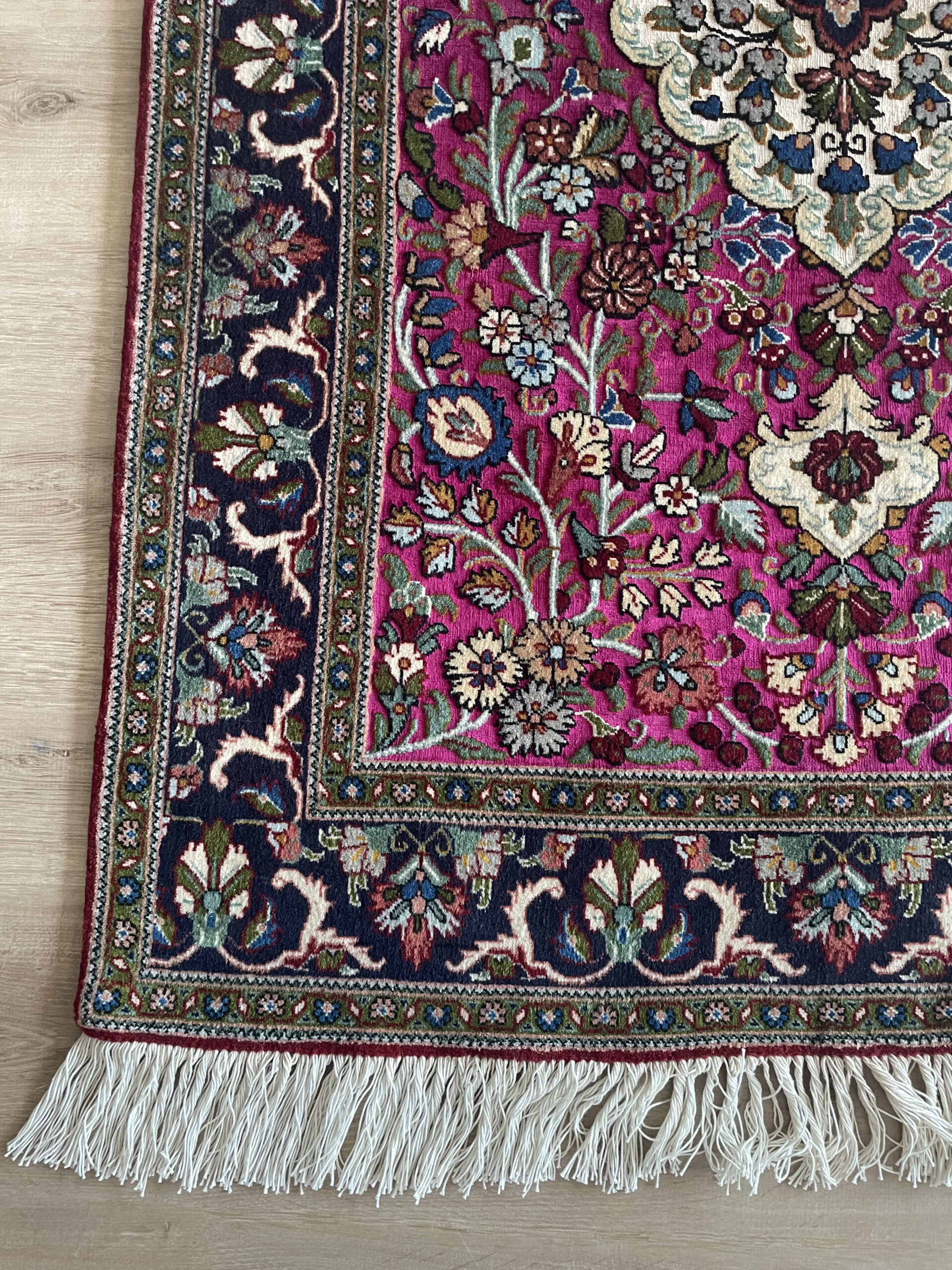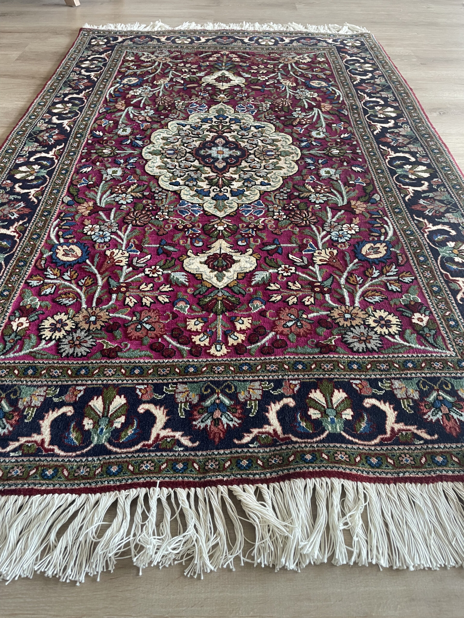 The experience of the carpet maker is 12 years in the field of making handmade carpets on the same pattern. The size of the carpet is 120 by 155.