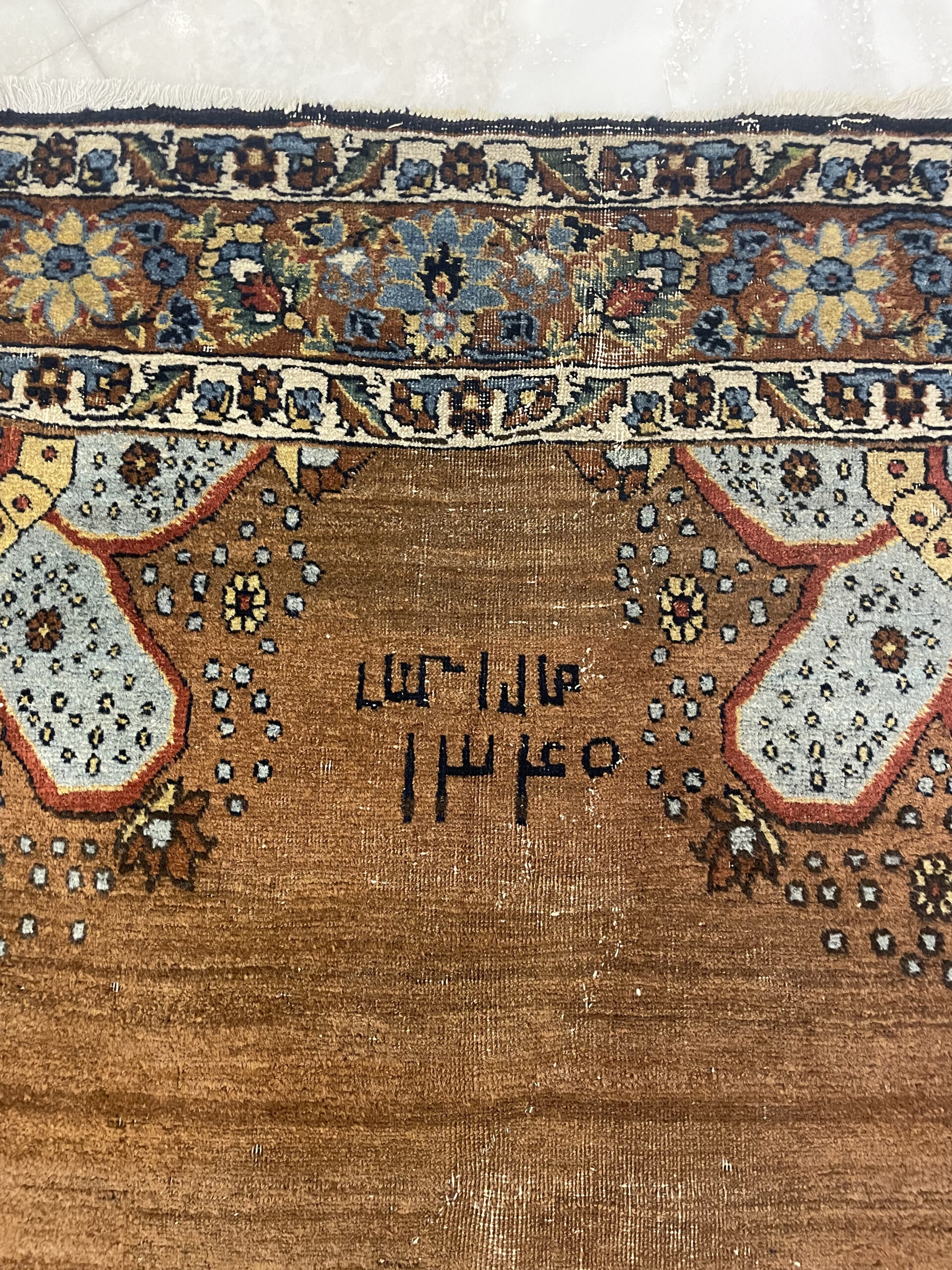 The experience of the carpet maker is 9 years in the field of making handmade carpets on the same pattern. The size of the carpet is 210 by 120.
