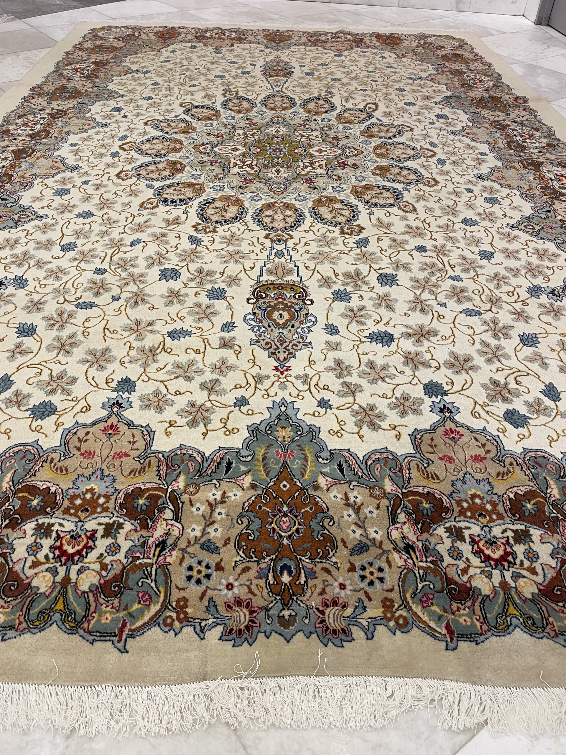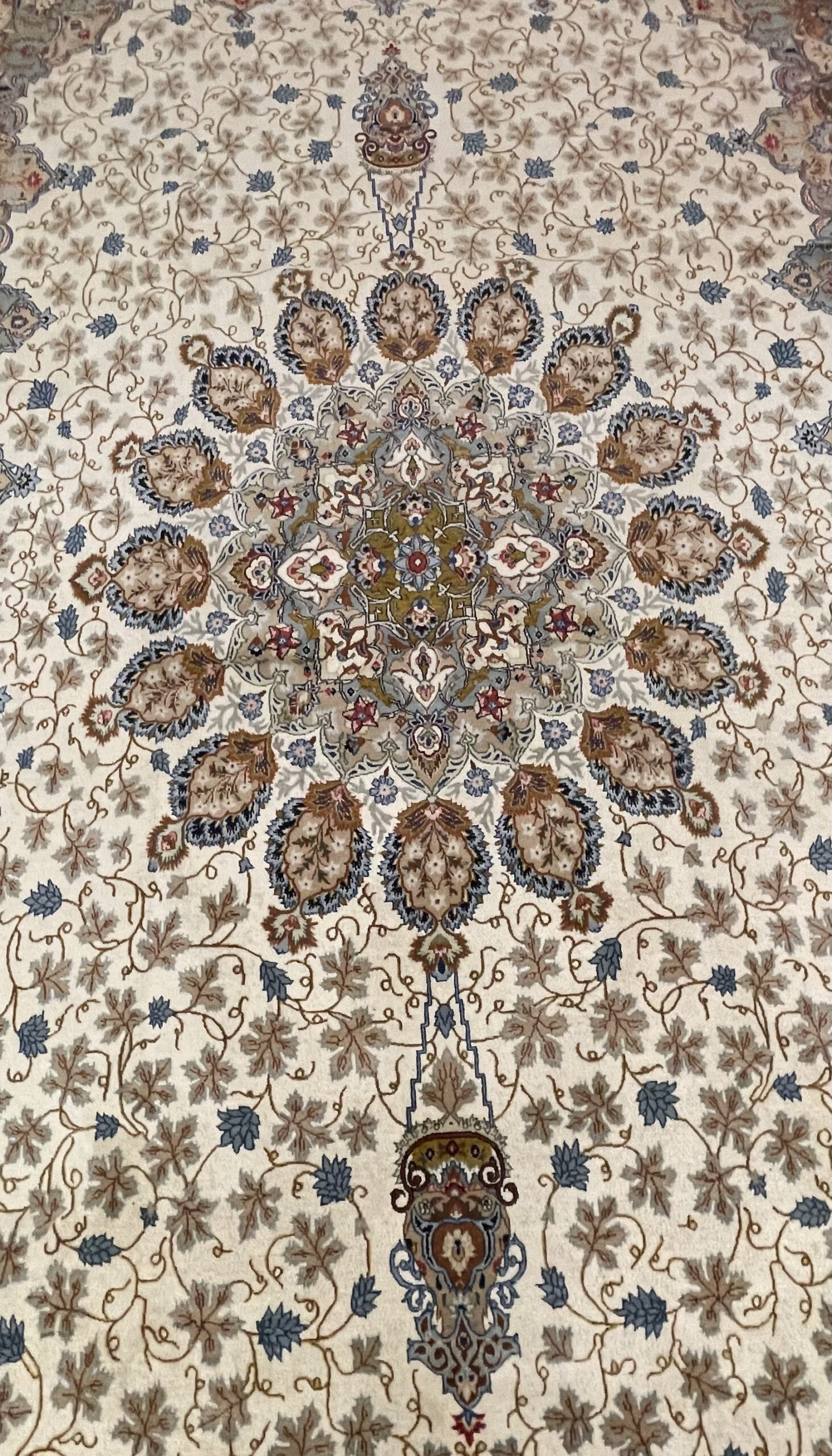 The experience of the carpet maker is 9 years in the field of making handmade carpets on the same pattern. The size of the carpet is 290 meters in 2